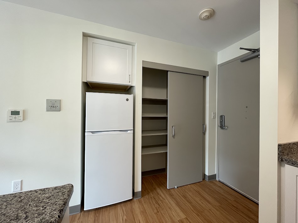 In the development itself there is a community room, food pantry, and assigned parking, subject to availability