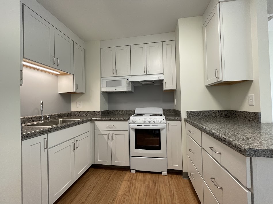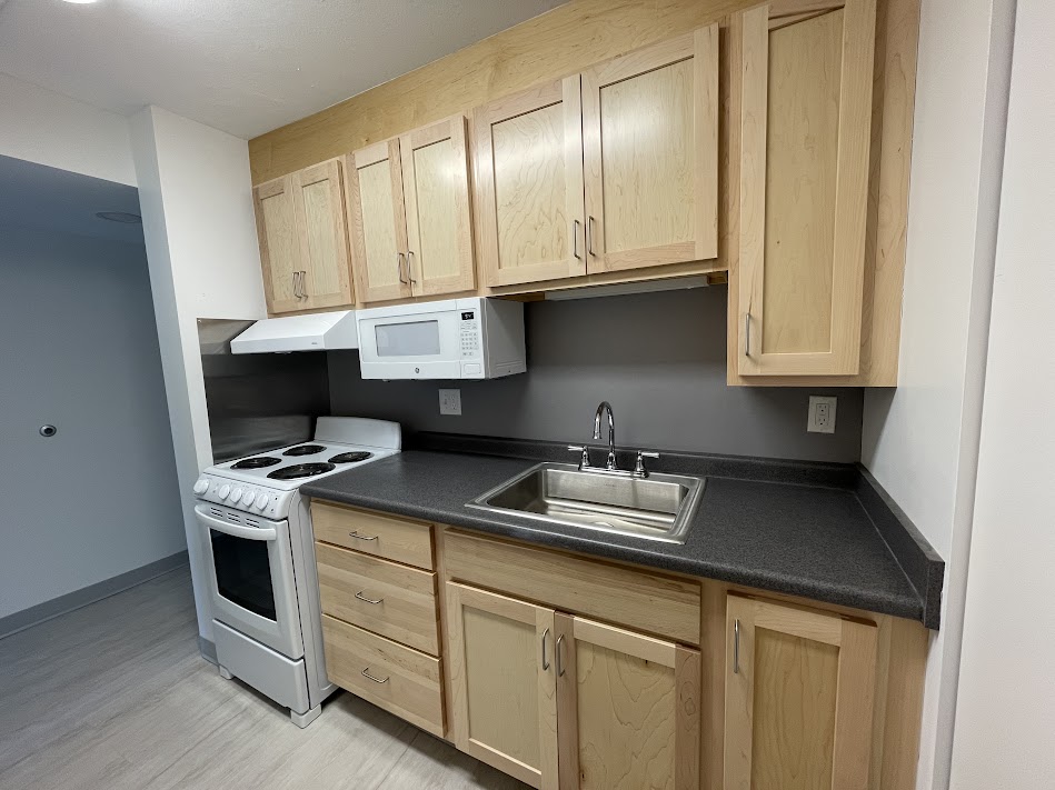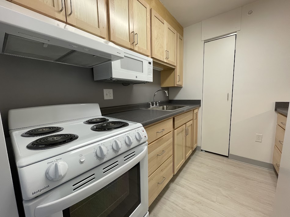 The building has a community room with computer, television and library areas and a kitchen. There is also assigned parking, subject to availability.